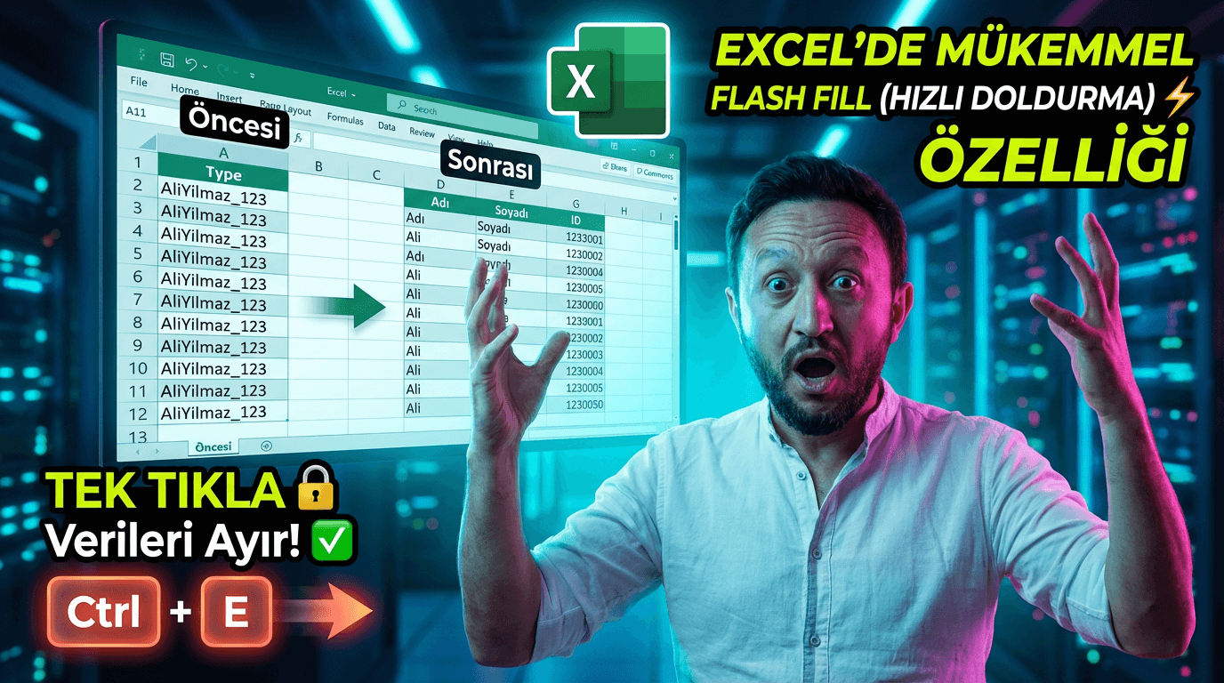Excel Flash Fill, Excel Hızlı Doldurma, Excel Veri Ayırma, Excel Veri Düzenleme, Excel İpuçları, Excel Formülleri