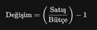 Sadece satışı bütçeye bölmek size yakınsama oranını verir. Bizim ihtiyacımız olan ise yüzde kaç sapma olduğudur. Bunun için şu formülü kullanın:
