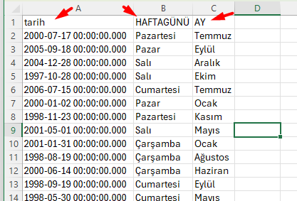 Kolonları bunun yerine kendi belirlediğiniz şekilde hatta Türkçe karakter dahi yazabilirsiniz.